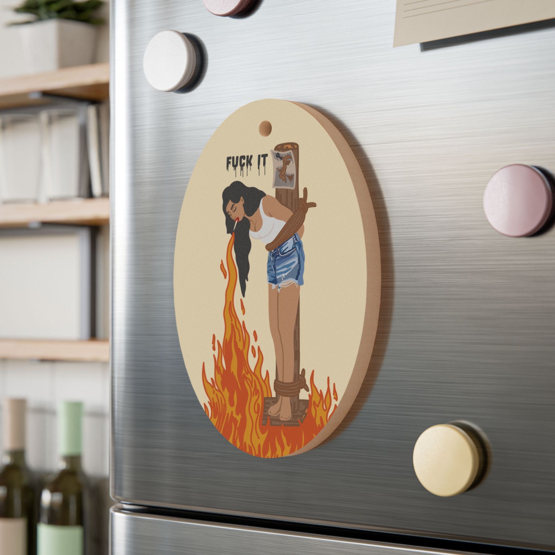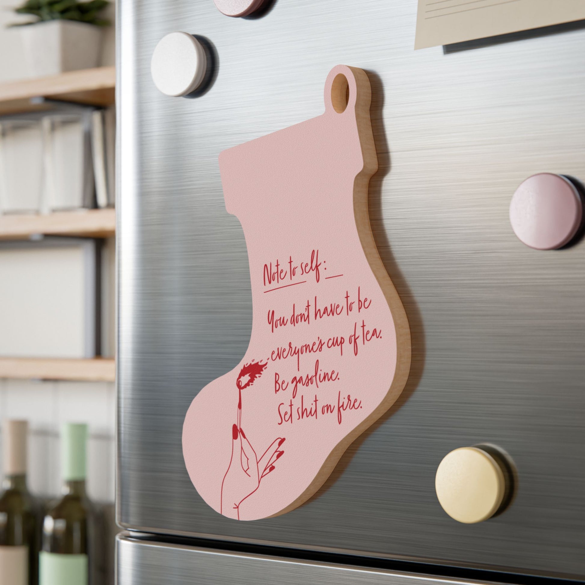 Created to add a personal decorating touch to any space around the house, these personalized wooden ornaments are packed with rustic charm. Each ornament features a handy magnetic back for effortless placement on metal surfaces, and a stylish red ribbon for effortless hanging.